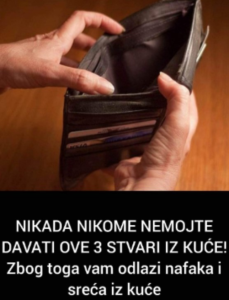 3 min read Zanimljivosti NIKADA NIKOME NEMOJTE DAVATI OVE 3 STVARI IZ KUĆE! Zbog toga vam odlazi nafaka i sreća iz kuće January 25, 2026 admin