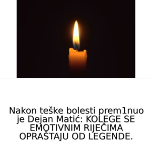 3 min read Zanimljivosti Nakon teške bolesti prem1nuo je Dejan Matić: KOLEGE SE EMOTIVNIM RIJEČIMA OPRAŠTAJU OD LEGENDE.. January 26, 2026 admin