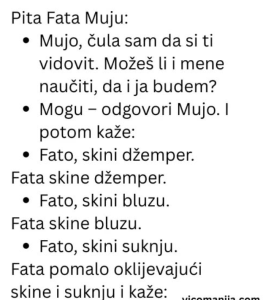 Sutradan, majka krene ispitivati snahe redom, pa upita prvu: