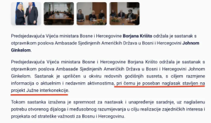 S druge strane, saopćenje Američke ambasade znatno je preciznije i sadržajnije. U njemu se navodi da su Ginkel i Krišto razgovarali o najnovijim dešavanjima vezanim za plinovod Južne interkonekcije, uključujući i naredne korake na nacrtu međunarodnog sporazuma između Bosne i Hercegovine i Hrvatske, „koji će omogućiti isporuku pouzdanog američkog prirodnog ukapljenog gasa (LNG) u BiH preko Hrvatske“.