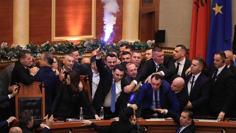 Tokom današnje plenarne sjednice albanskog parlamenta u Tirana došlo je do ozbiljne eskalacije tenzija, koju su obilježili bacanje dimnih bombi i fizički sukobi opozicionih poslanika s pripadnicima Garda Republike Albanije.