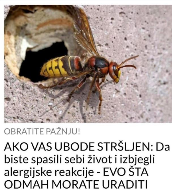 Ubodi insekata — posebno ono od stršljena — mogu biti više od obične neugode. Iako većina uboda osa i pčela izaziva samo lokalnu bol, kod uboda stršljena rizik od jakih i opasnih reakcija je značajno veći, posebno ako se radi o alergičnoj osobi ili ako je ubod na posebno osjetljivom dijelu tijela (lice, vrat, usna duplja). Upravo zato je ključno znati kako reagovati odmah, bez odlaganja.