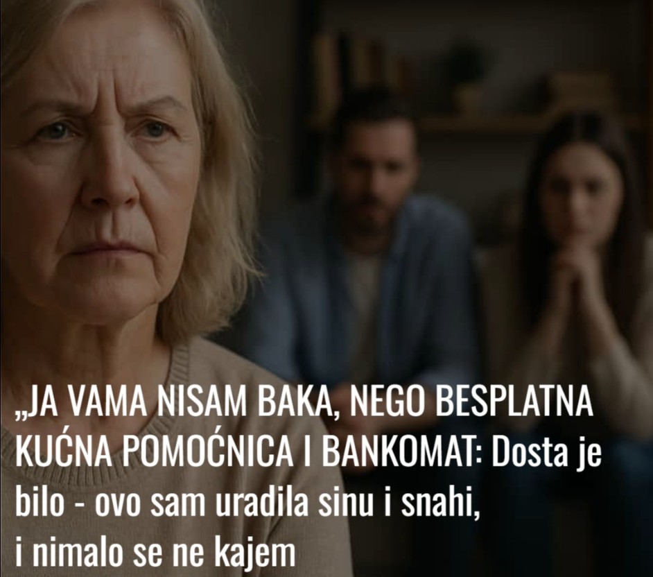 Naravno, u početku su bili zbunjeni. Sin je mislio da sam ljuta, snaha je pomislila da sam povrijeđena. Objasnila sam im mirno – volim vas, ali želim da i moj život nešto vrijedi. Nisam sluškinja, nisam bankomat. Pomagaću kad mogu, ali ne pod svaku cijenu.