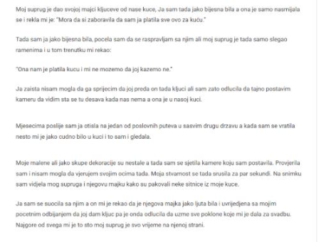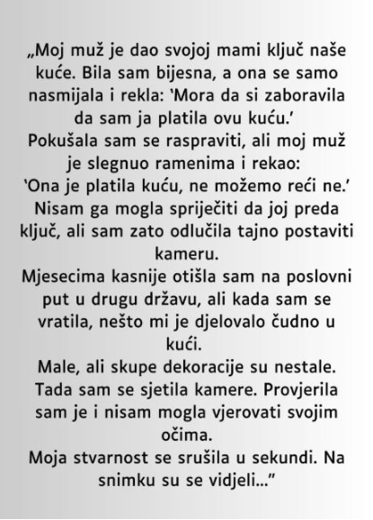 Moj muž je dao svojoj mami ključ naše kuće. Bila sam bijesna….