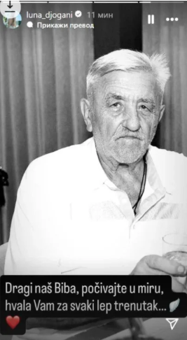 Uz objavljenu fotografiju, Luna se oprostila kratkom, ali emotivnom porukom u kojoj je izrazila zahvalnost za zajedničke trenutke i uputila posljednji pozdrav. Njene riječi odražavale su iskrenu tugu, ali i poštovanje prema čovjeku koji je ostavio snažan trag u njihovoj svakodnevici.