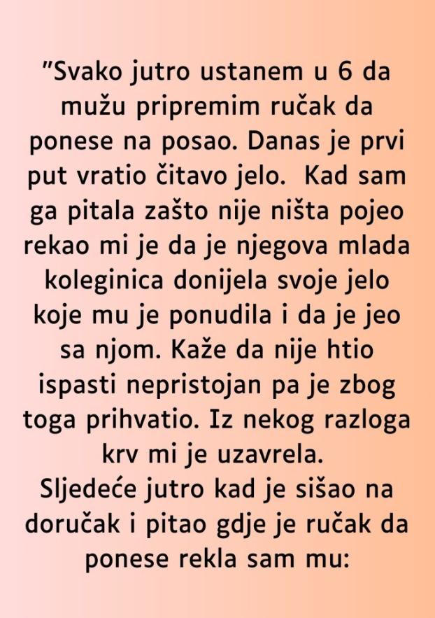 U konačnici, ta rutina — ustajanje rano da bi se pripremio ručak — nije samo praktična navika. To je čin predanosti, simbol brige i stalni podsjetnik da se najveće vrijednosti često kriju u najjednostavnijim trenucima našeg svakodnevnog života. To je priča o ljubavi koja se ne skriva, nego se živi — dan za danom, obrok za obrokom, u mirnoj tišini jutara.