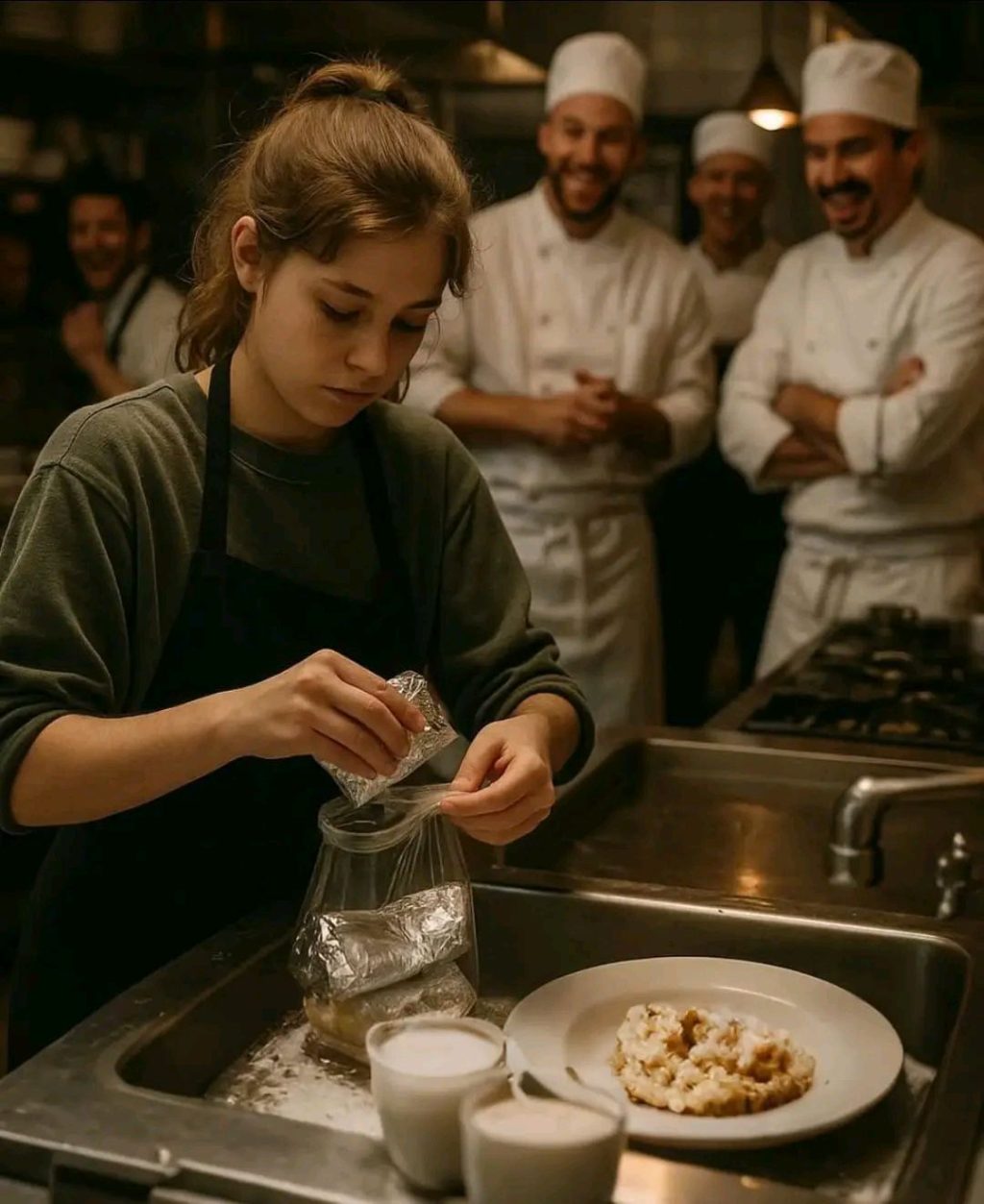 Ellie je prolazila tiho, noseći plastičnu kesu, dok su njihovi glasovi punili kuhinju.Samo je Rosa, glavna konobarica, osjetila knedlu u grlu. „Ne sviđa mi se kako je ismijavate,“ rekla je menadžeru Toniju.