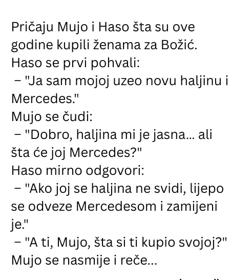 Pričaju Mujo i Haso šta su ove godine kupili ženama za Božić.